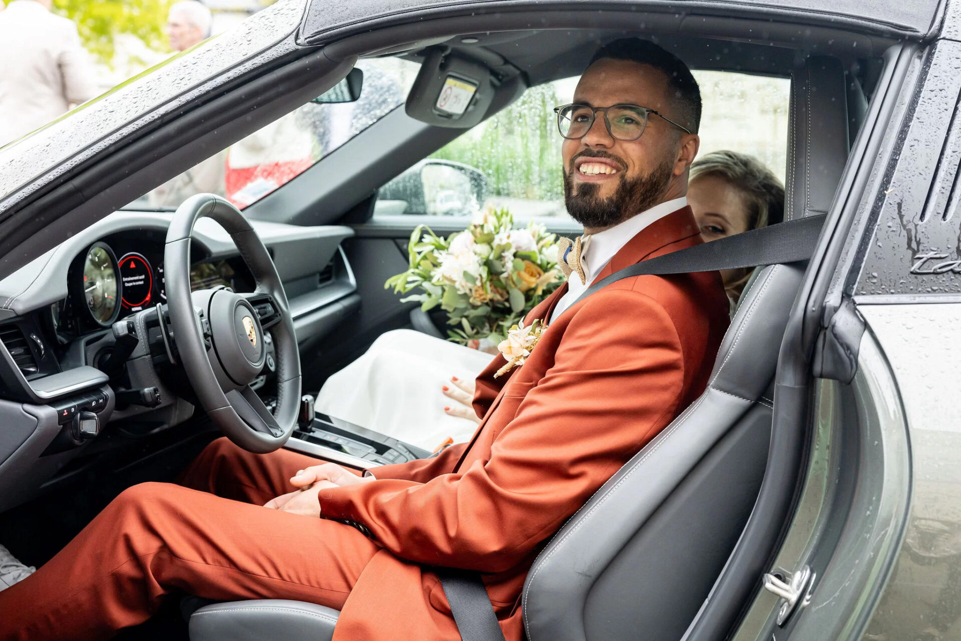 Mariés dans la porsche